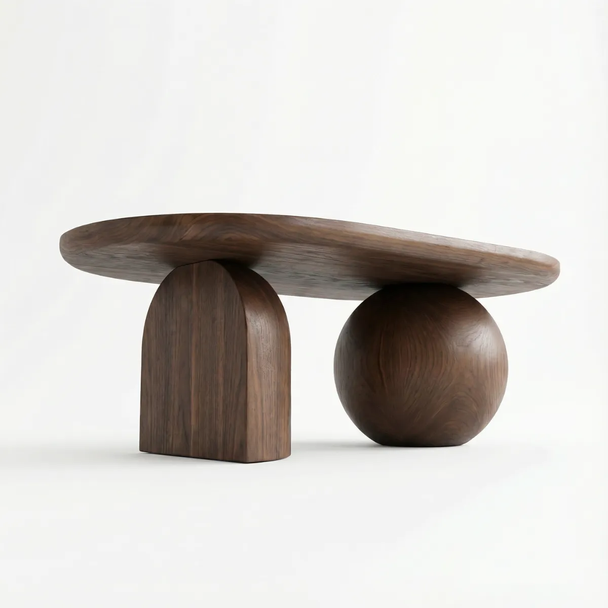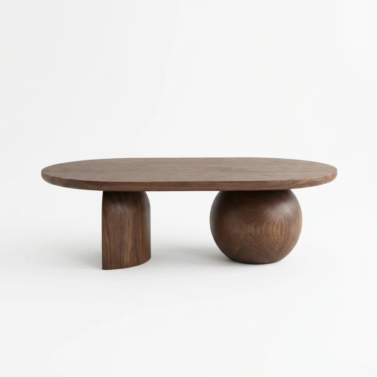 التصميم: سطح بيضاوي + أرجل هندسية (كروية ونصف أسطوانية).