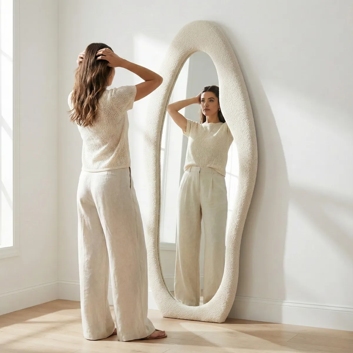 ضيفي لمسة من النعومة والدفء لغرفتك مع مرايا “تيدي” الفريدة. تصميم يخرج عن المألوف بإطار خشبي مبطن ومغطى بقماش “الباندا” الفاخر، ليجمع بين وظيفة المرايا العملية وجمال القطع الفنية، ويجعل ركن التصوير في منزلك مميزاً للغاية.